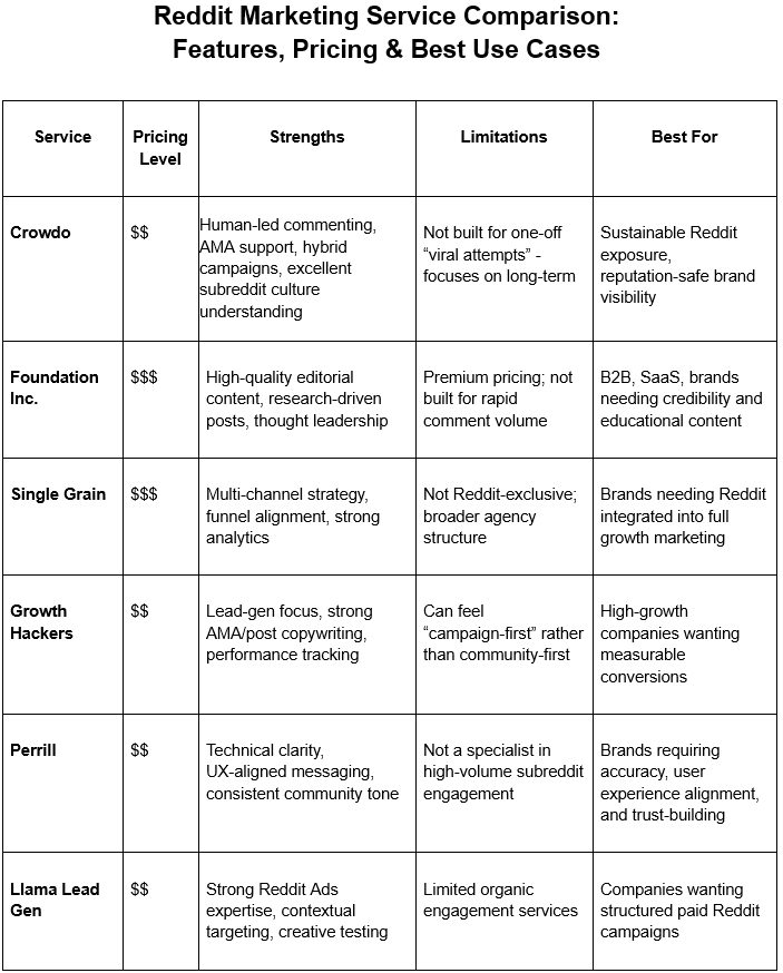 - The detailed look at the top 6 Reddit marketing services of 2025