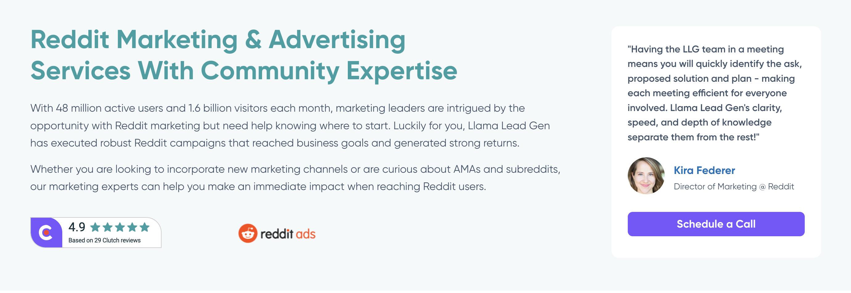 Unlike any other agencies from this list, Llama Lead Gen focuses on paid campaigns, and Reddit is no exception. The real difference is – they don’t treat Reddit Ads as a giant billboard screaming your brand’s name left and right. Instead, they choose contextual placements that feel more like a contribution than an ad, and that actually works.