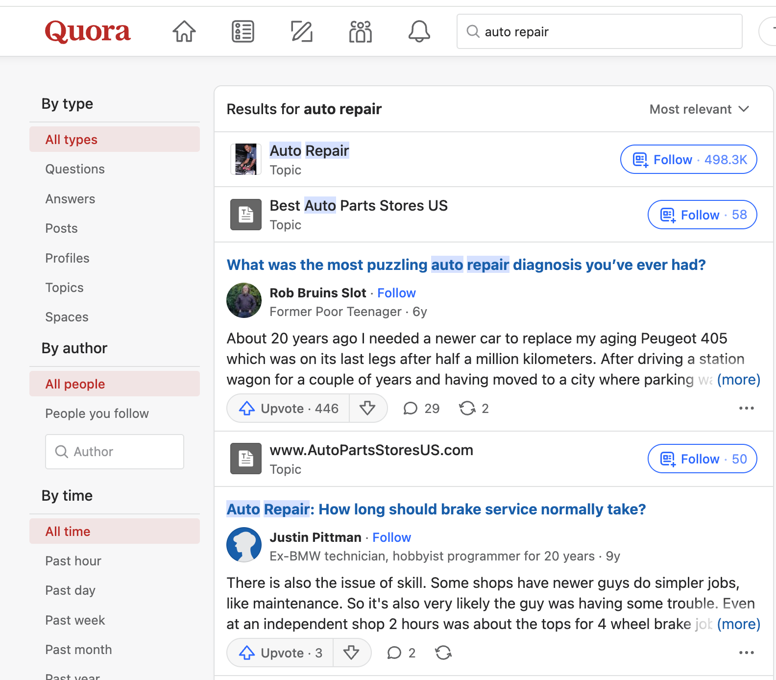 For example, if your niche is “auto repair”, you would search for terms like: