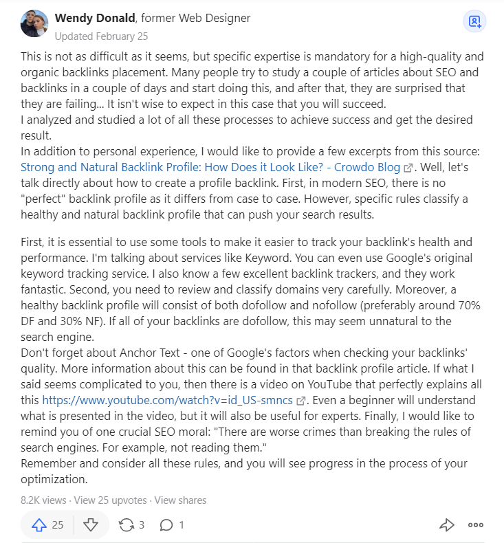 The process behind link-building on Quora is actually not that different from crowd marketing.